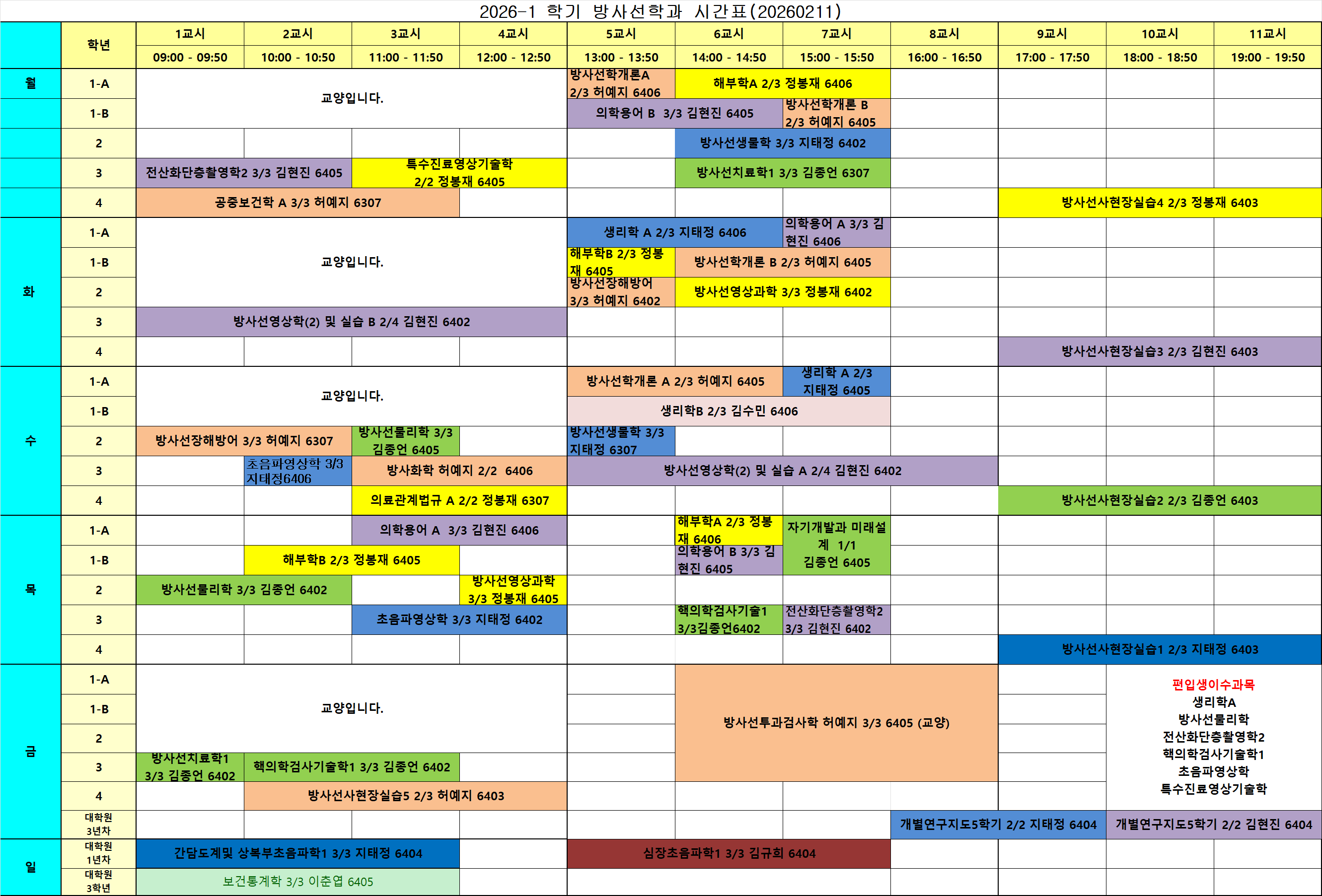 2.11 방사선학과 시간표(2026-1학기)